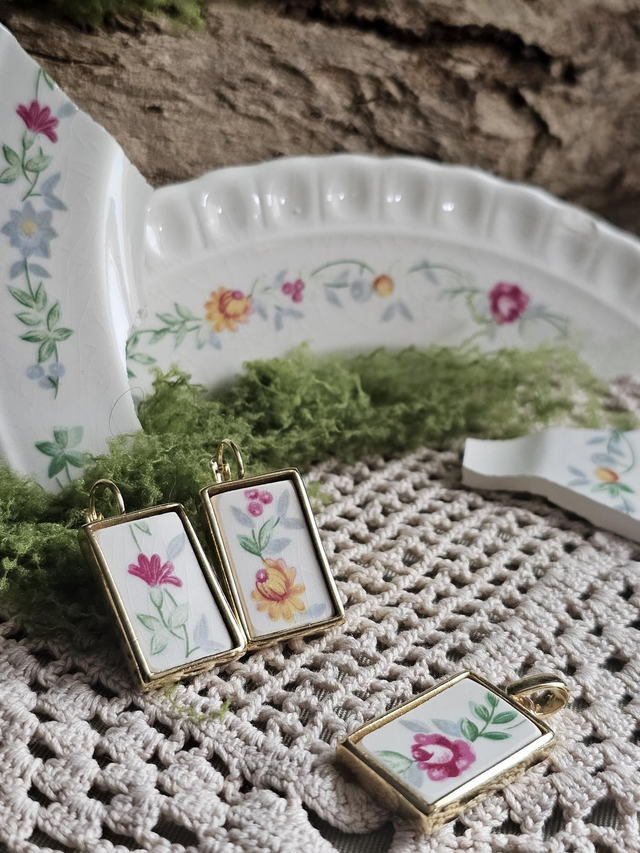 Chaque bijou est une pièce unique, réalisé avec passion dans mon petit atelier en Lorraine. Les assiettes utilisées pour cette collection ont été soigneusement sélectionnées pour créer des bijoux uniques.