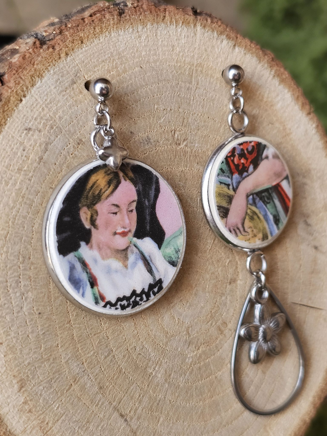 Chaque bijou est une pièce unique, réalisé avec passion dans mon petit atelier en Lorraine. Je prends plaisir à chiner chaque pièce de vaisselle, je sélectionne ensuite les motifs que je taille et désépaissis. Pour finir, je laisse mon âme monter ces petits bouts d'histoire en bijoux au gré de mes envies de perles, de breloques ...