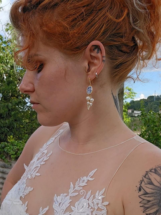 Cette paire est le modèle que je me serais créé pour mon mariage en 2019 ✨️❤️ .Cette magnifique paire de boucles d'oreilles est ornée de véritable perles d'eau douce. Leur longueur est de 6cm.