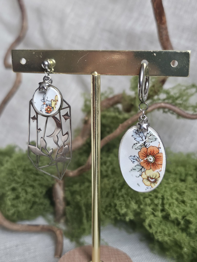 Chaque bijou est une pièce unique, réalisé avec passion dans mon petit atelier en Lorraine. Je prends plaisir à chiner chaque pièce de vaisselle, je sélectionne ensuite les motifs que je taille et désépaissis. Pour finir, je laisse mon âme monter ces petits bouts d'histoire en bijoux au gré de mes envies de perles, de breloques ...