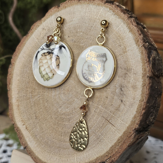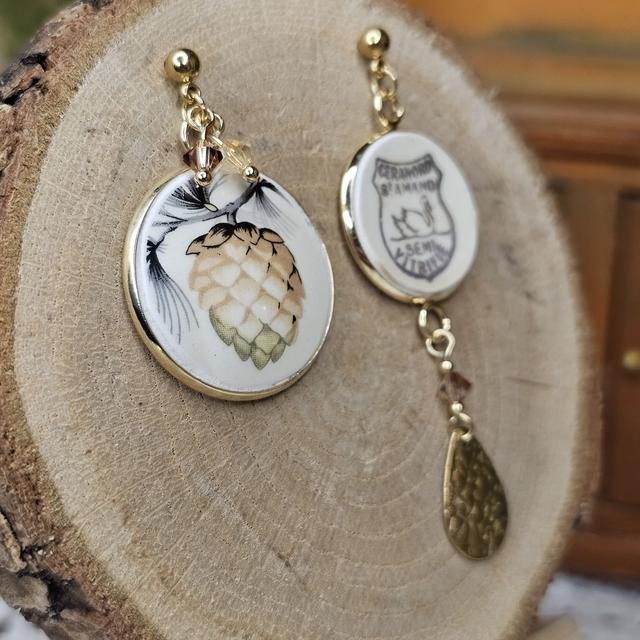 Chaque bijou est une pièce unique, réalisé avec passion dans mon petit atelier en Lorraine. Je prends plaisir à chiner chaque pièce de vaisselle, je sélectionne ensuite les motifs que je taille et désépaissis. Pour finir, je laisse mon âme monter ces petits bouts d'histoire en bijoux au gré de mes envies de perles, de breloques ...