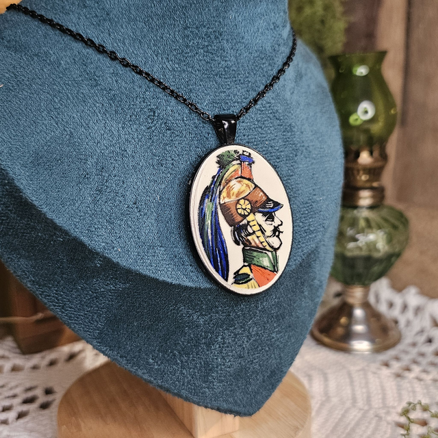 Optez pour cette imposant médaillon noir (5cm) qu'y possède une chaîne de 60cm