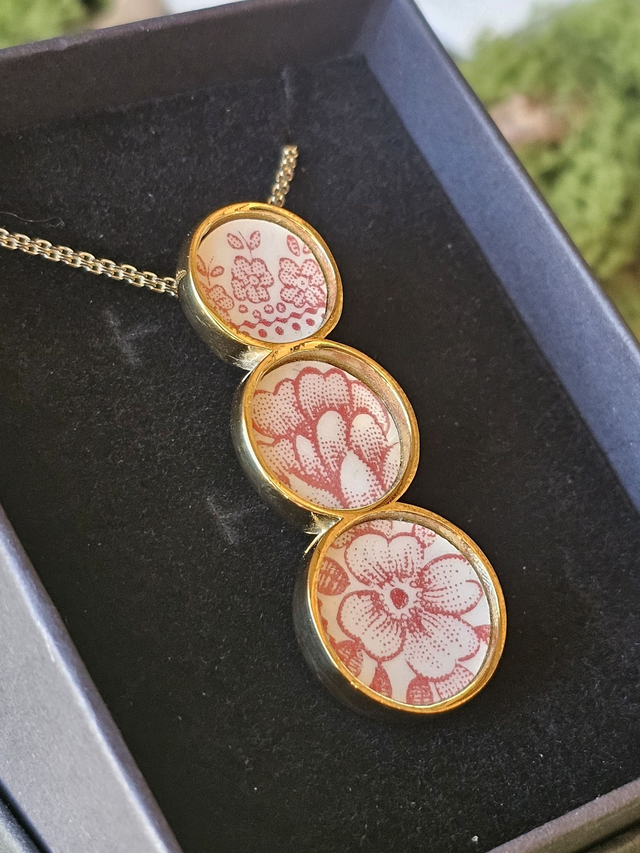 Chaque bijou est une pièce unique, réalisé avec passion dans mon petit atelier en Lorraine. Les assiettes utilisées pour cette collection ont été soigneusement sélectionnées pour créer des bijoux uniques.