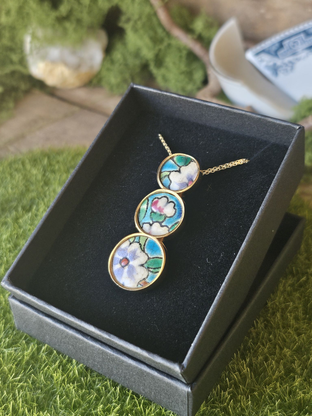 Chaque bijou est une pièce unique, réalisé avec passion dans mon petit atelier en Lorraine. Les assiettes utilisées pour cette collection ont été soigneusement sélectionnées pour créer des bijoux uniques.