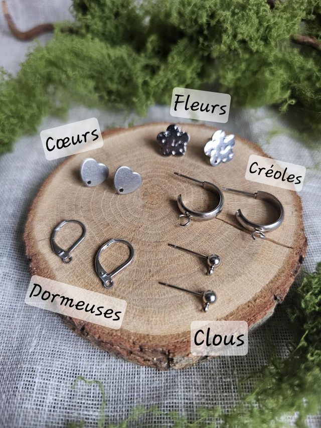 Composez vous même votre petites paires de boucles d'oreilles, choisissez les attaches qu'y vous correspondent le mieux : Coeurs, Fleurs, Clous, Dormeuses ou Créoles (Précisez en commentaire de la commande).