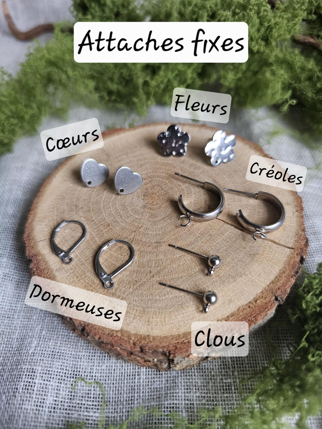 Choisissez les attaches selon votre style et/ou le plus confortable pour vous pour votre petite paire de boucles d'oreilles. (Précisez l'attache choisi lors de la commande)