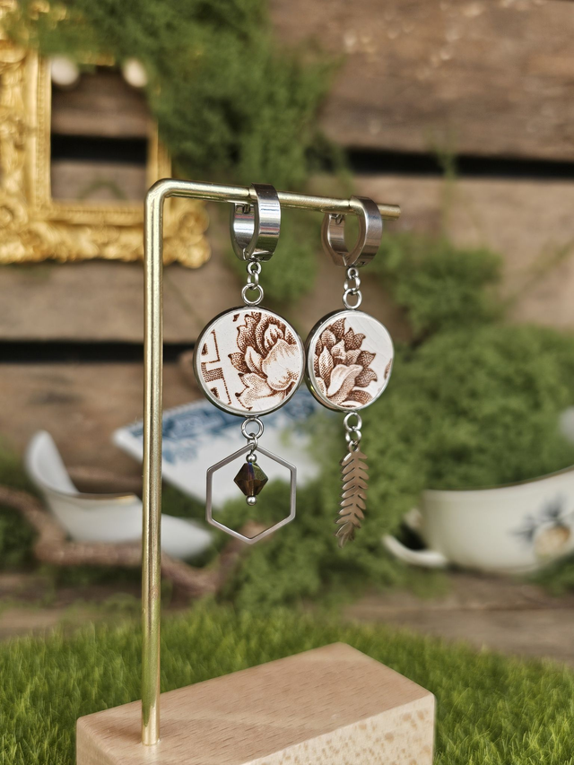 Chaque bijou est une pièce unique, réalisé avec passion dans mon petit atelier en Lorraine. Je prends plaisir à chiner chaque pièce de vaisselle, je sélectionne ensuite les motifs que je taille et désépaissis. Pour finir, je laisse mon âme monter ces petits bouts d'histoire en bijoux au gré de mes envies de perles, de breloques ...